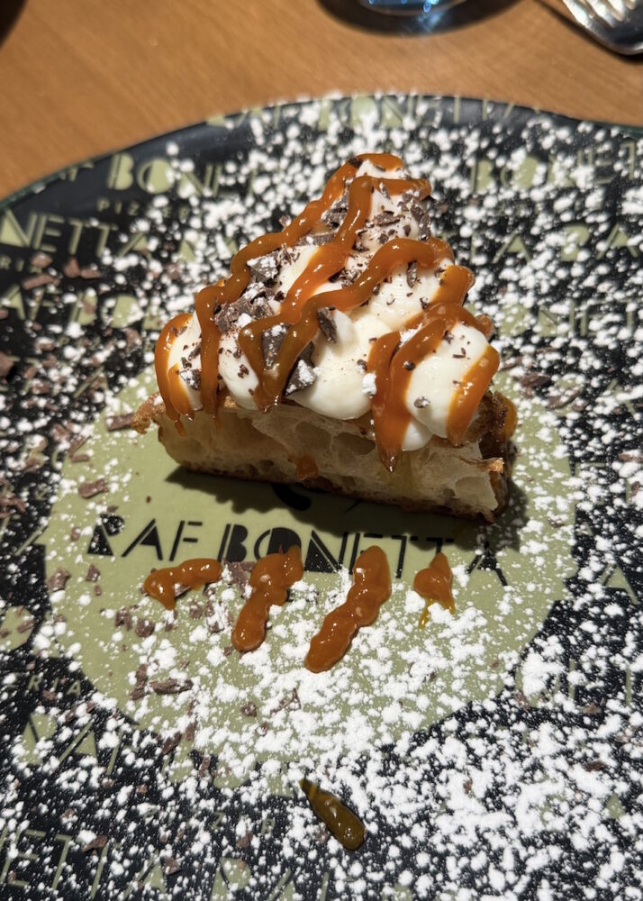 Molto buoni i dolci che hanno radici chiare nella tradizione e nel territorio partenopeo e chiudono con golosità e nonostante siano ancora pizza, ancora amido, ancora carboidrati si lasciano finire, senza pentimento, fino all’ultimo boccone.