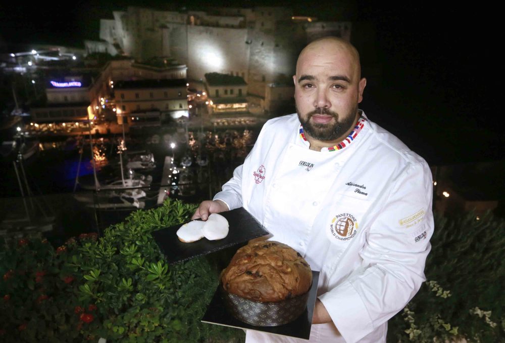 Il raffiolo di Salvatore Gabbiano, della pasticceria “Dulcis in Pompei”, ha fuso Nord e Sud: base realizzata con una pasta del panettone rielaborata, glassa e stratificazioni ispirate alla versione classica del dolce, con marzapane e ricotta di pecora.