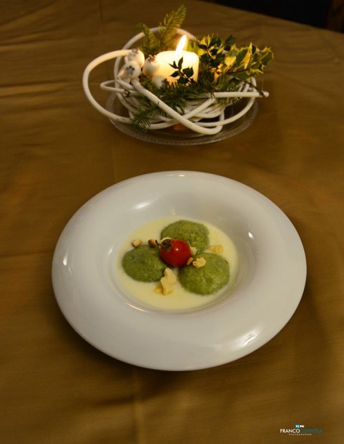 I primi piatti degustati sono stati preparati rispettivamente nel nome della tradizione e della rielaborazione dei sapori napoletani: candele del premiato “Pastificio Vicidomini” ripiene di ricotta e mozzarella dei Monti Lattari in salsa napoletana e lo gnocco ripieno di broccoli e salsiccia su fonduta di bufala e croccante bianco.