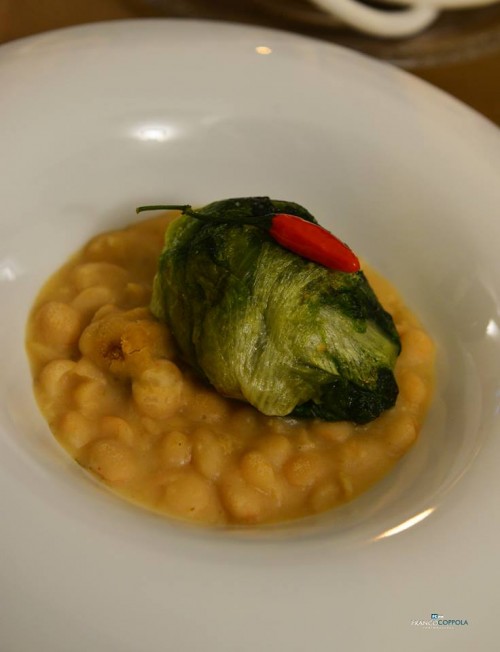 Una serata unica ed inimitabile, a cominciare dall’antipasto: pappa di pane cafone al ragù con polpettina di Agerola e cuore di scarola con capperi, olive, pinoli, alici e uvetta in zuppetta di fagioli di Controne.