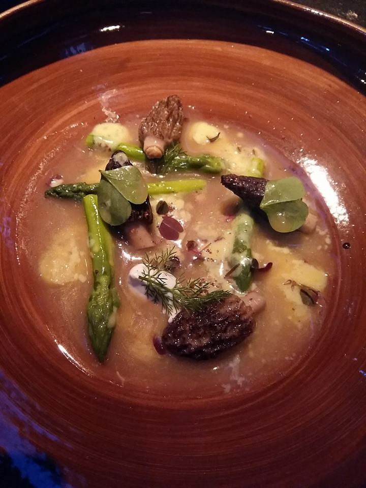 Una cucina che si sta verticalizzando sempre di più, giocata sulle acidità, attenzione alla materia prima, aggiornamenti sulle spezie orientali, tutto dosato con moderazione e soprattutto con precisione.