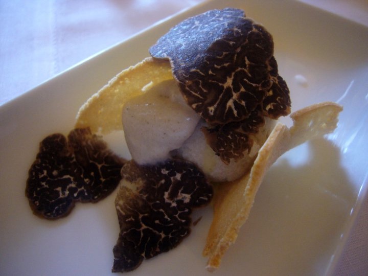 Intermezzo con croccante di pane, gelato e lamelle di tartufo siciliano bianchetto borchii.