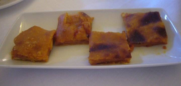 Altro piatto di mare: pesce spada in crosta di pane profumato con polvere di fiori di capperi iblei e olive alla cenere, emulsione di bottarga, cuori di finocchio e riccioli di carota: super ! ho lasciato solo la carota e mi sono pure dimenticato di fare la foto.