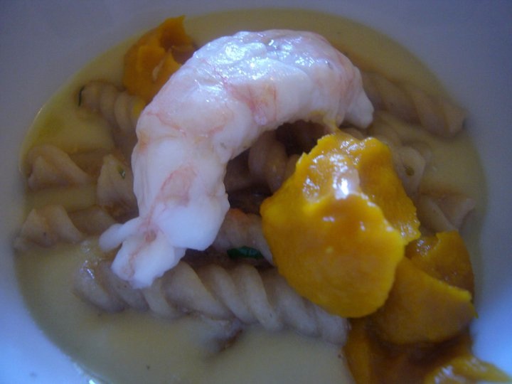 Ecco i fusilli di grano Tumminia agli scampi con macco di fave e zucca gialla (Mataroccu)