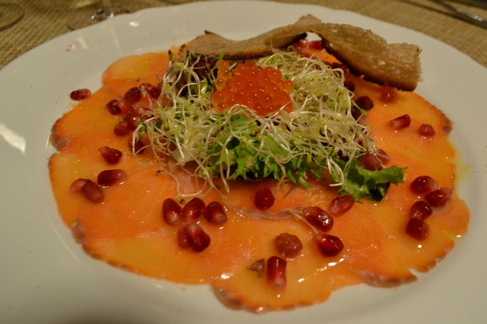 Per chi predilige gusti vegetariani c’è la purea di radici fresche e croccanti e olio di zucca.