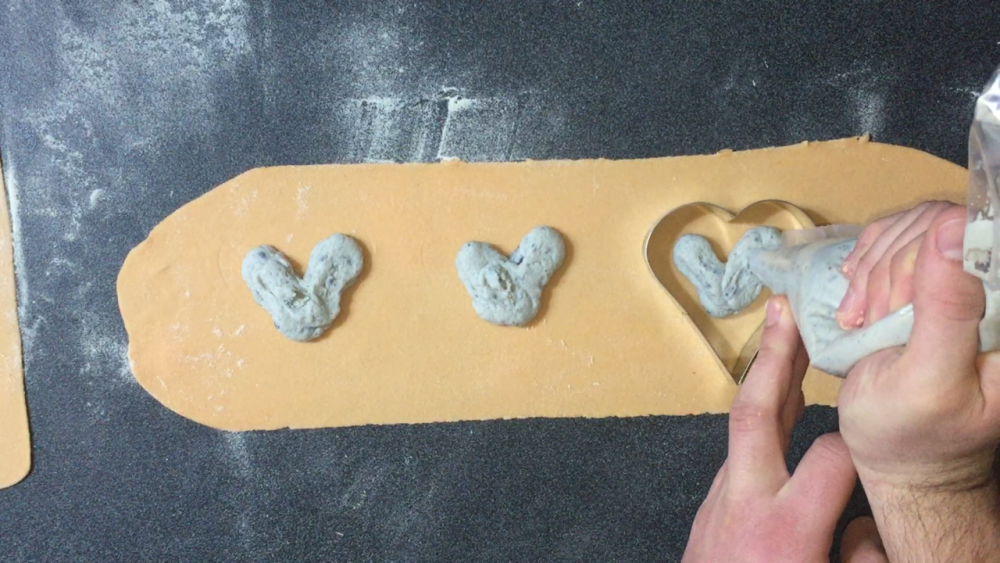 Stendiamo la pasta creando una sfoglia (io con la sfogliatrice automatica ho usato il numero 7) e formiamo i nostri ravioli a forma di cuore.