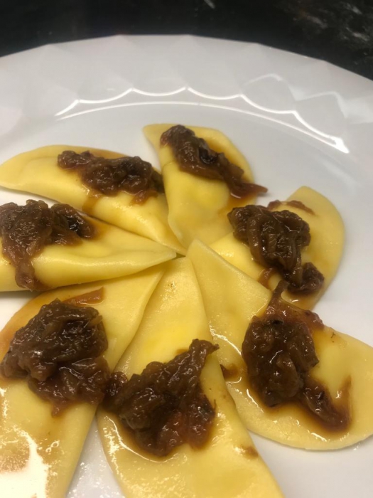 Ravioli di toma di bufala con salsa alla genovese