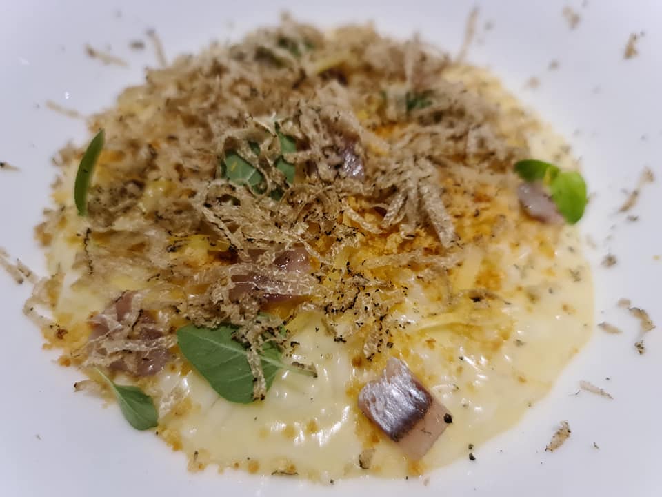 - risotto, mozzarella, acciughe, limone e tartufo estivo