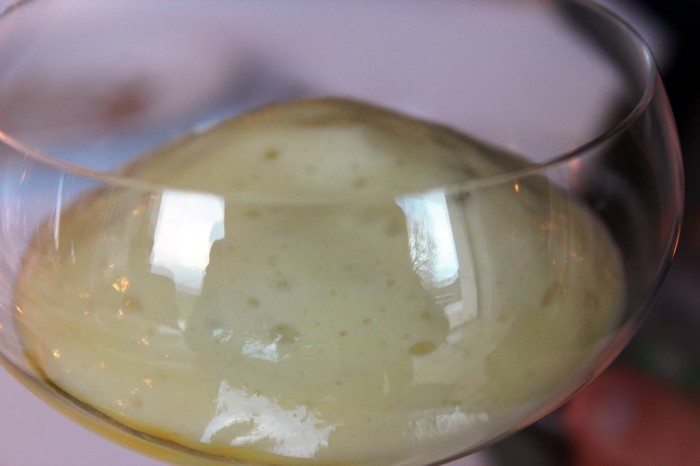 L’animella è morbida, una base per l’acidità lieve della panna e quella più decisa del limone, i granelli di sale grossolani uno stacco tra le acidità.