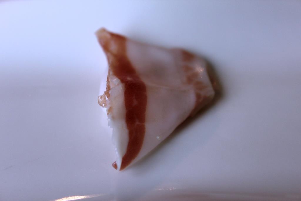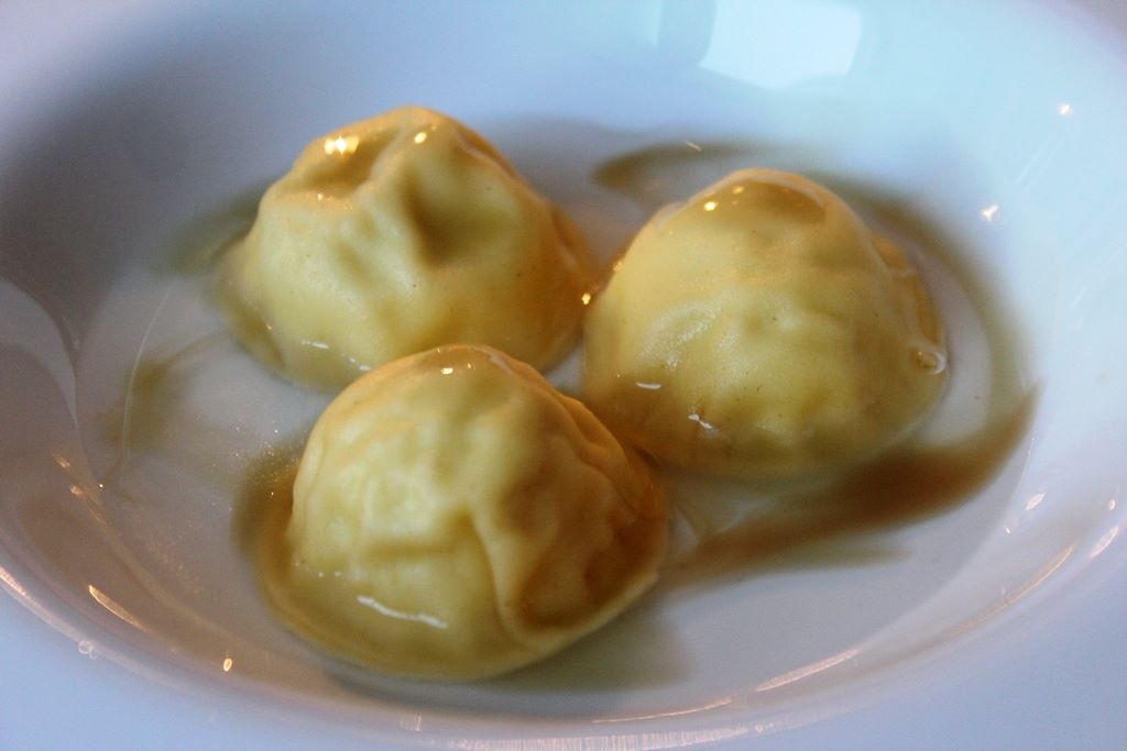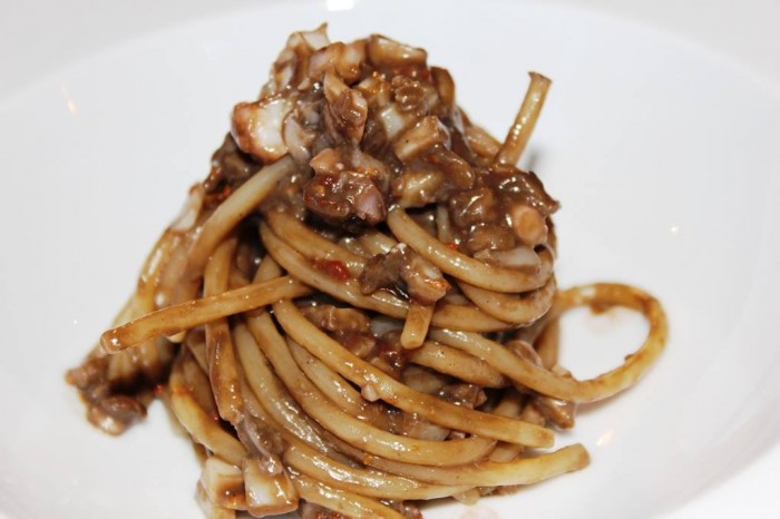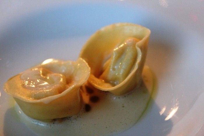 La pasta è sottile, tirata come una corda, tenace, racchiude il piccolo tesoro di baccalà, un ristretto di baccalà ed un olio evo molto profumato completano la preparazione. Grande equilibrio e piacevolezza in una semplicità solo apparente.