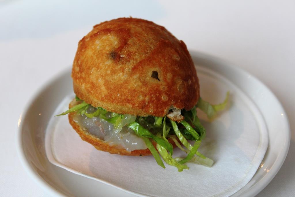 Tecnica e materia che si rincorrono, tanta territorialità e su tutti la crostatina con olive nere e olio evo, un piccolo gioiellino dal gusto Mediterraneo, induce tanta salivazione con note amare molto eleganti, l’aperitivo perfetto insomma.
