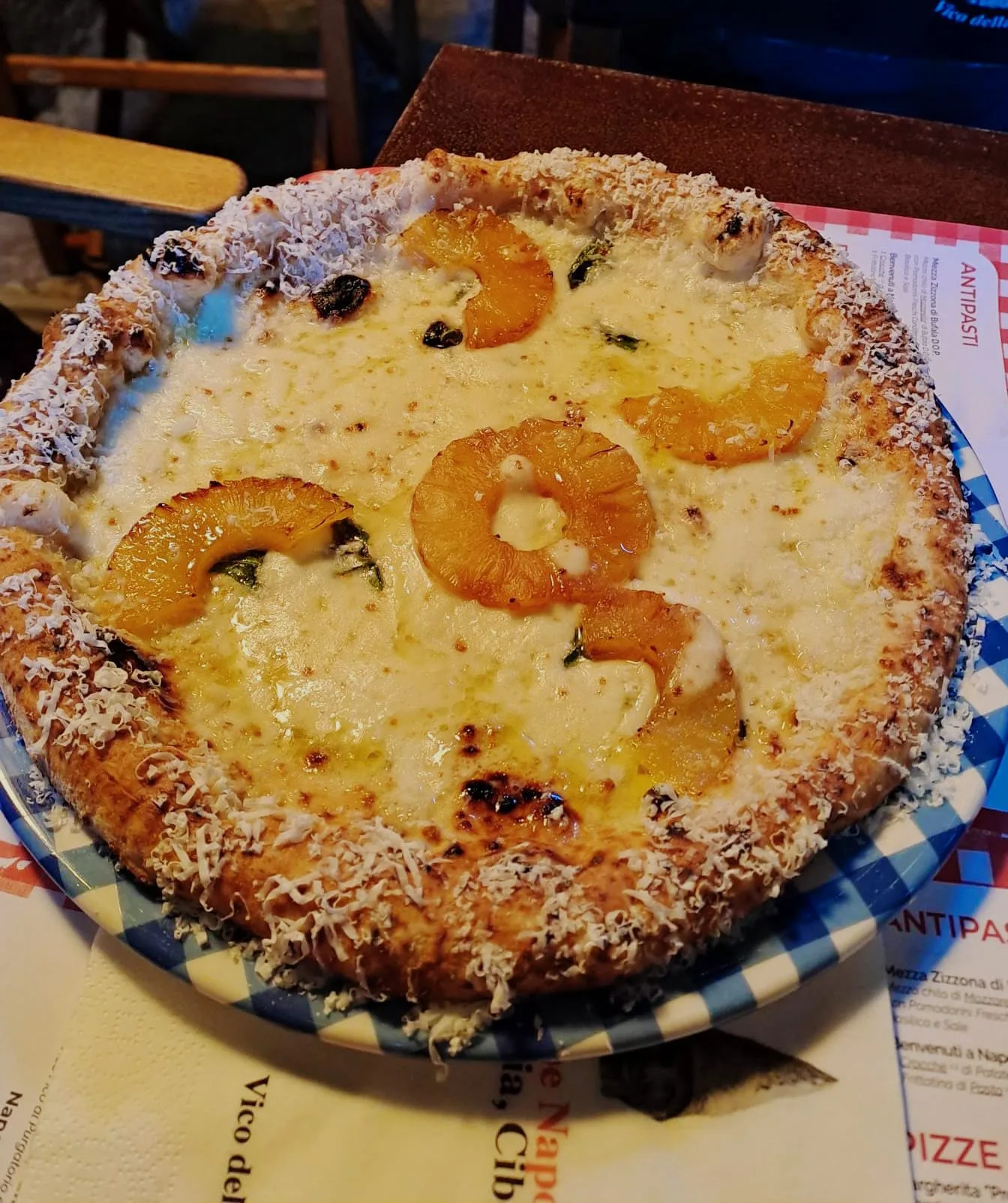 Pizza Ananas di Sorbillo 28/1/2024 Torna a: Recensione della pizza all’Ananas di Sorbillo: uno spicchio è lo sfizio e può bastare Successiva →