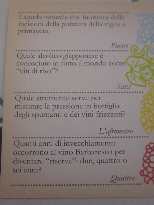 29 3/1/2011 Torna a: Regali non banali: Il grande gioco del vino esempio di domande per la sfida← PrecedenteSuccessiva →