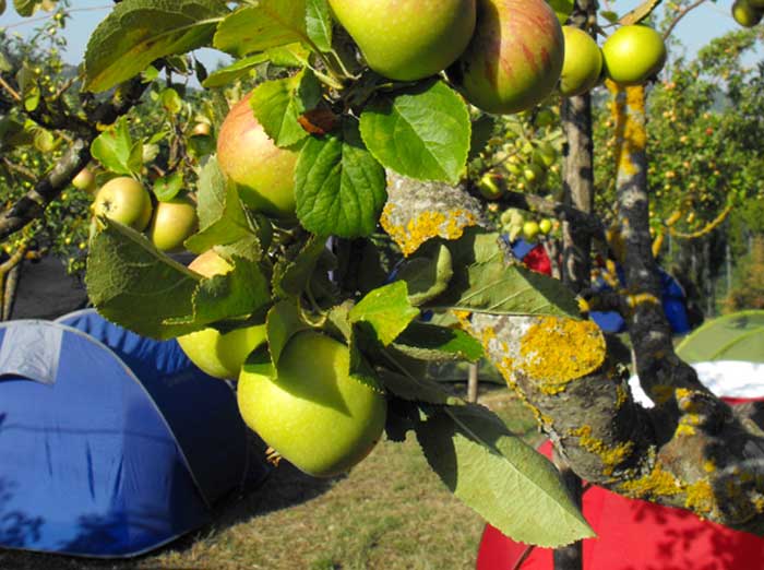 Si dorme in tenda e si viene svegliati dal campanaccio delle mucche, si respira l'aria fresca e pulita del mattino e, guardandosi intorno mentre il sole illumina di luce radente i campi, si vive il frutteto, la rugiada ancora posata sulle mele, qualche insetto che vaga alla ricerca di nettare e la mente già alla ricerca di emozioni.
