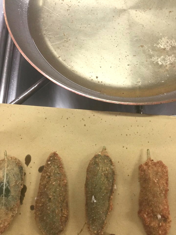 Asciugarle su carta scottex e farcirle con il pecorino, l’acciuga ed impanare nel seguente modo: