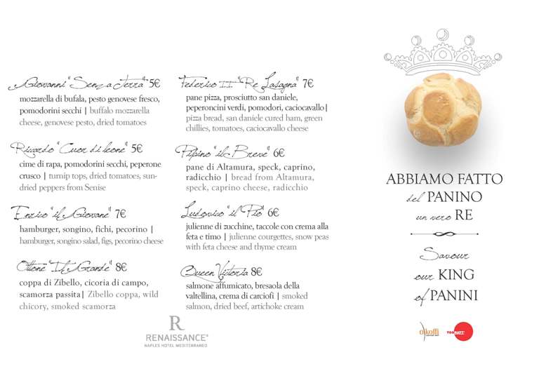 È nato un Re! Riccardo “Cuor di Leone” ti aspetta al Toomatt' e al bar O' Koffi del Renaissance Naples Hotel Mediterraneo per una gustosa pausa pranzo con pane cafone, provolone, pomodorini secchi e cime di rapa.