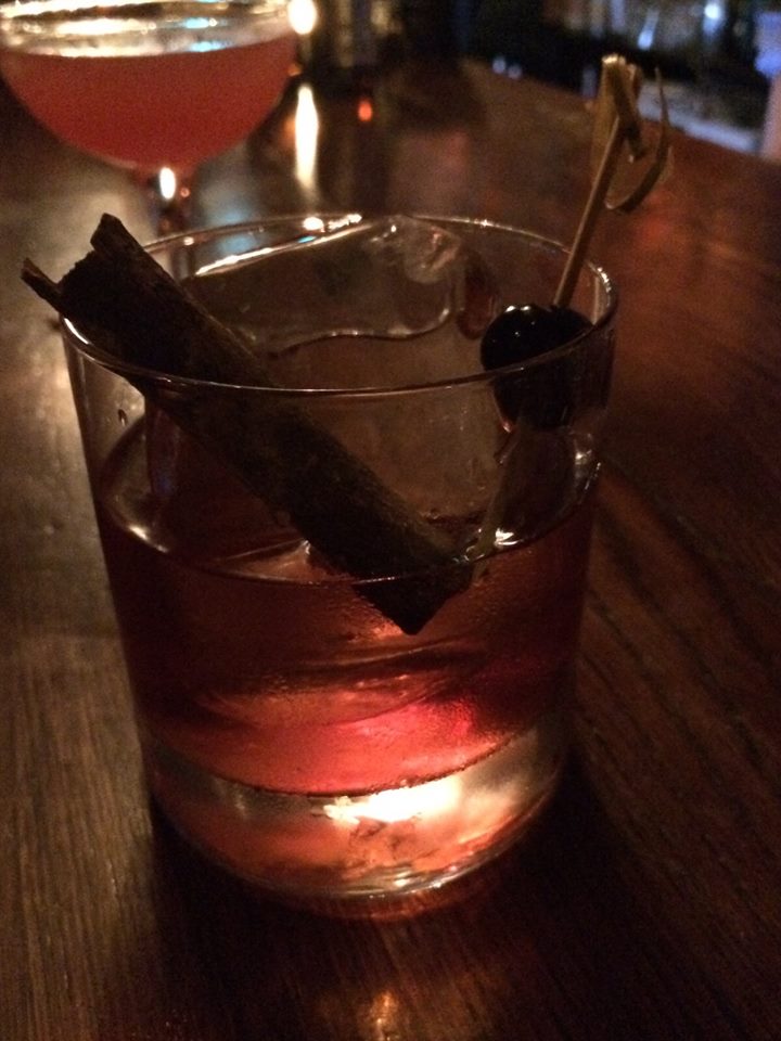 Fermata 1: “Cahooch Old Fashioned”, composto dal Cahoohch, un home-made grog fatto da Mont-gay black barrell rum, Bulleit bourbon, Cointreau noir liqueur e Martini rosso. A questo si aggiunge maraschino cherry syrup.