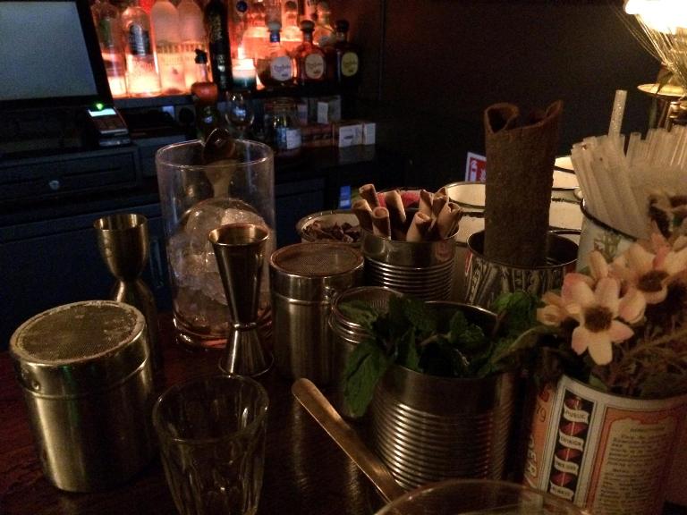 Locale bello, abbastanza grande e un banco bar che si potrebbe passare ore a guardarlo. Home-made, mug e bicchieri di ogni natura, fornellini e pentolini sul banco a bollire, estrattori di essenze e piccole serre. Un laboratorio insomma.