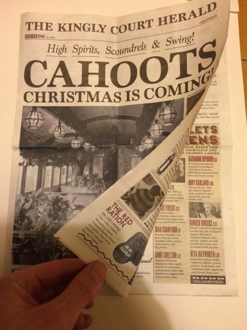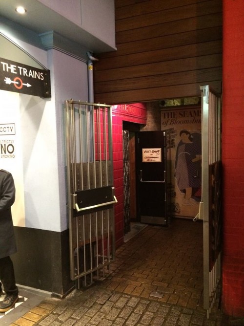 Non c’è insegna, siamo in una traversina di Carnaby street e improvvisamente si trova un improbabile ingresso della metropolitana. Si scende e si arriva alla biglietteria, che è il guardaroba. Ti viene consegnata una copia di un quotidiano, che è il menù, e una volta dentro si parte.