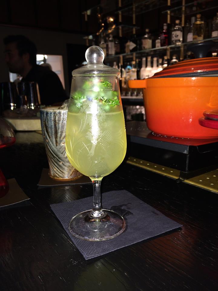 La mia bella compagna di bevute sottolinea subito il fatto che il rinquiquin (liquore della Francia del sud), attutisce l’affumicatura fatta al momento infiammando il tappo in legno, e ha pienamente ragione, la scelta degli ingredienti è sicuramente frutto di uno studio e di una grande cultura e di intuito.