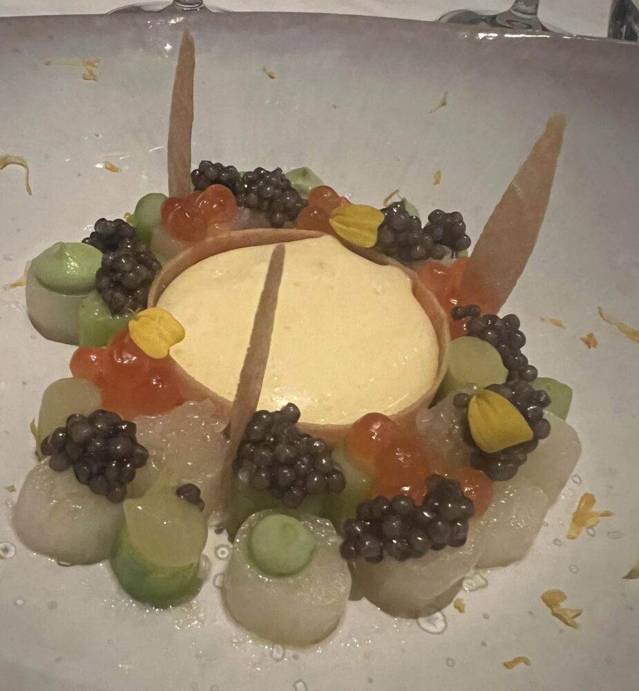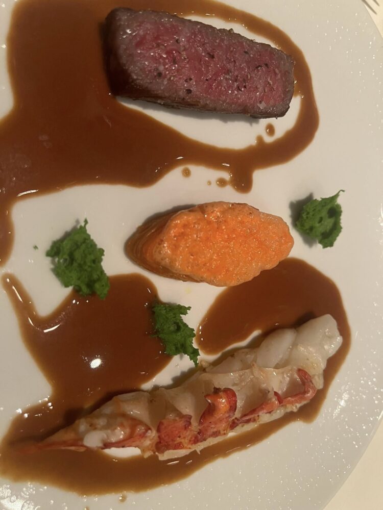 Il menu è tipicamente francese, con piatti sicuramente centrati e perfetti, Costagliola è uno chef che ha fatto carriere con il celebre cuoco francese ed è l’allievo che lo interpreta con maggior rigore con esperienza anche da Gordon Ramsey che al Caesar Palace ha un ristorante che fattura oltre 50 milioni dollari.