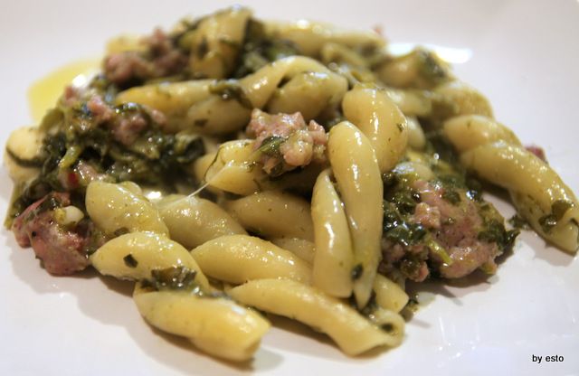 L’amaro dei friarielli viene esaltato dal grasso della salsiccia ‘e purmone ( confezionata con guanciale, ventresca, aglio, finocchietto e peperoncino) e dal suo piccante.