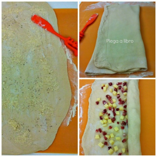 B. alla sera, si lavorano delicatamente, a mano, 100-150 grammi di strutto (o anche burro) con un cucchiaio di zucchero, un cucchiaino scarso di sale, una presa di pepe nero, 50 grammi di pecorino grattato; si aggiunge, via via, farina 00 ed eventualmente un po’ di latte (o anche acqua), fino ad arrivare a un panetto di 500 grammi, all’incirca.
