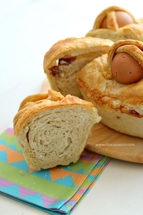 Se si inizia al mattino, si infornerà la sera del giorno seguente (in totale, 48 ore); si lavorerà sempre a temperatura ambiente, che al sud, in periodo pasquale significano 20/25 gradi.