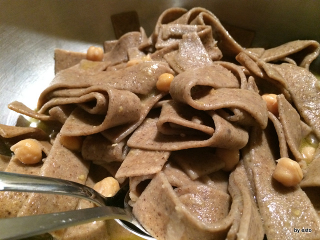 Preparare un impasto su un spianatoia di legno con la semola e la farina con acqua tiepida appena salata, fino a raggiungere dopo una decina di minuti un composto morbido, elastico e omogeneo. Lasciare riposare per almeno un' ora in una pellicola di plastica o sotto un panno umido.