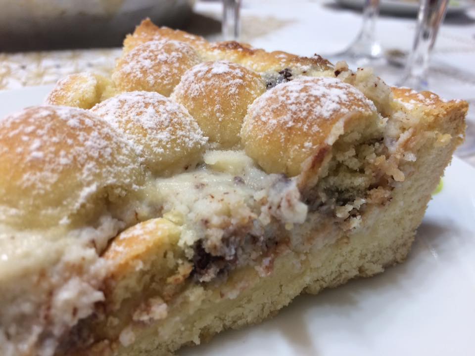 Qui l’abbinamento viene proposto come farcia di una crostata molto diffusa, soprattutto a Roma, dove – come fine pasto di tante trattorie – fa concorrenza a quella di ricotta e visciole. E con una piccola variante: a chiudere, palline di pasta frolla invece delle classiche striscioline.