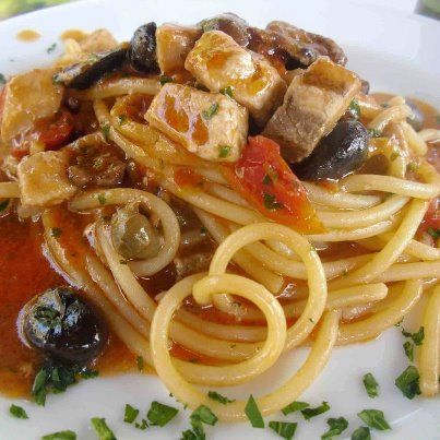 spaghettone 27/7/2012 Torna a: Ricetta cult. Spaghettone con pesce spada, pomodorini, olive e capperi Spaghettoni al pesce spada, con olive nere e capperiSuccessiva →