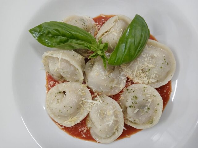 Un primo piatto che unisce la delicatezza della pasta fresca ripiena alla profondità del sapore dell’Antico Pomodoro Riccio, varietà tradizionale campana coltivata da generazioni nei terreni collinari di Caiazzo, nel cuore dell’Alto Casertano. Questo pomodoro, allevato nei piccoli orti familiari e tramandato come un bene prezioso, prende il nome dalla sua forma costoluta e irregolare, simile a una corona. È un pomodoro da conserva, con buccia sottile, polpa compatta e sapore dolce, noto per il suo gusto intenso e la bassa acidità che lo rendono ideale per sughi lenti e ricchi di profumo. Al Ristorante Il Generale di Caiazzo è impiegato in diverse preparazioni.