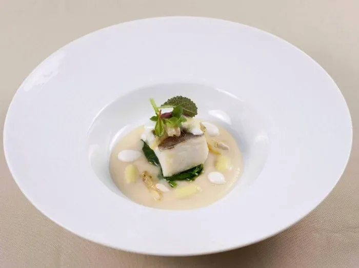 Merluzzo con crema di fagioli e broccoli a foglia di olivo 22/2/2016 Torna a: Gennaro Esposito: ricetta pop per Md. Merluzzo con crema di fagioli e broccoli Merluzzo con crema di fagioli e broccoli a foglia di olivo