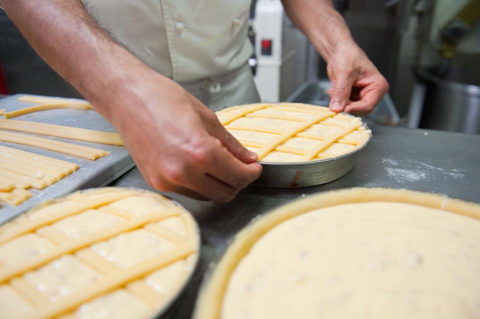 Con una crema al profumo di fiori d’arancio, ricotta, frutta candita e grano, racchiusa in una friabile pasta frolla, la pastiera è il dolce più preparato in case e pasticcerie.