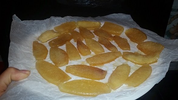 - Quando avranno assorbito completamente il liquido, trasferire le scorzette su carta forno per almeno 1 giorno lasciando cristallizzare lo zucchero.