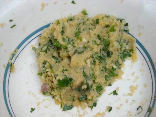 Amalgamate il pangrattato con il pecorino, aggiungete un trito di aglio, capperi e prezzemolo, una presa di sale ed una spolverata di pepe.