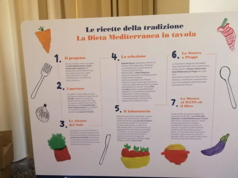 Due docenti, Raffaele Sacchi e Paola Vitaglione, hanno riveduto e corretto questo patrimonio legato alla nostra cultura materiale, spesso tramandato solo per via orale, che molto racconta del nostro territorio attraverso le basi della celebre dieta che ci ha resi famosi nel mondo. Dopo la messa a punto delle ricette, è partito un laboratorio creativo all’interno della Casa dei Cristallini, con l’obiettivo di avvicinare i bambini e le loro famiglie ad una alimentazione più sana e più corretta.