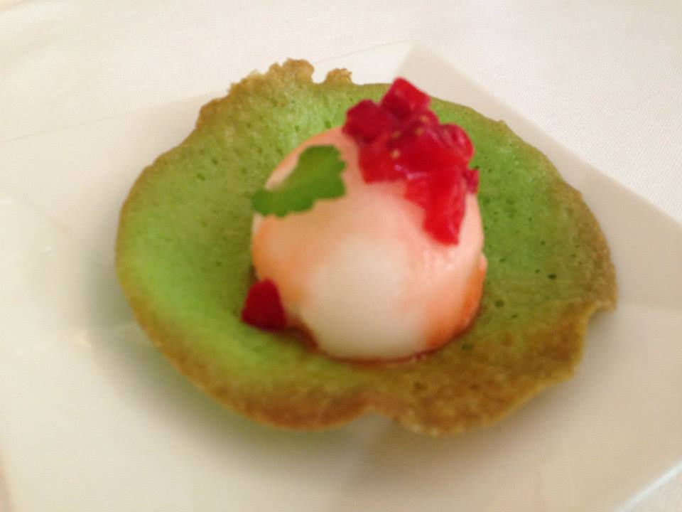 Don Alfonso, cappelli di pasta farcita con straccetto di bufalaalle spezie d’Oriente, pecorino e cipolla. 2014