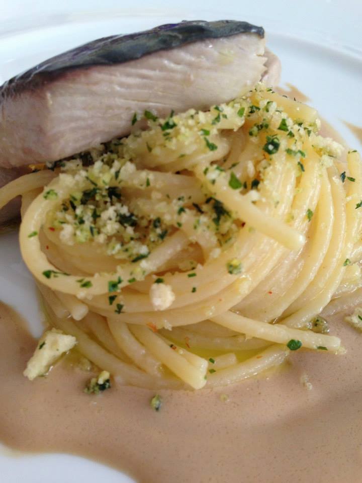 Bene, detto questo, vi lascio ai piatti, provati durante un fantastico pranzo alla meridionale, ossia iniziato alle 14 e terminato tre ore dopo. Tutto molto buono, di mio gusto in questo momento ancora il gelato di anguilla e gli spaghetti allo sgombro, entrambi freschi con l’allungo fumé e la trovata del carpione con il pesce che rende complesso e interessante il piatto di pasta.