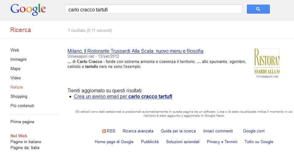 Quasi quattro anni fa lo chef Carlo Cracco venne messo alla gogna da tutti i quotidiani e mass media (blog compresi, ma non questo) per aver presentato un conto di euro 4.140,00 a dei clienti a cui aveva servito una generosa grattata da 3 etti di tartufo d’Alba al modico prezzo di euro 1.090,00/etto. Da lì chiamata dei carabinieri, denunce, offese, ecc… poi il silenzio.