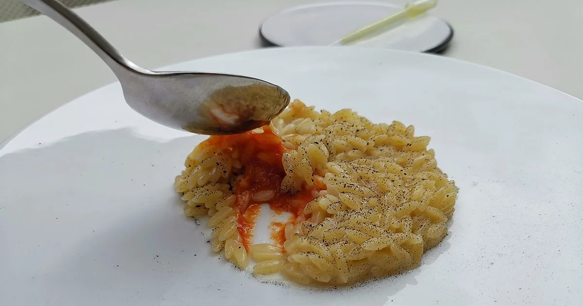 Leonardo Caterino del ristorante La Dispensa di Aquatio di Matera, partecipa a Primo Piatto dei Campi 2022, iniziativa siglata da 50 Top Italy e Pastificio Dei Campi, con Ricordi futuri di una pasta al pomodoro.