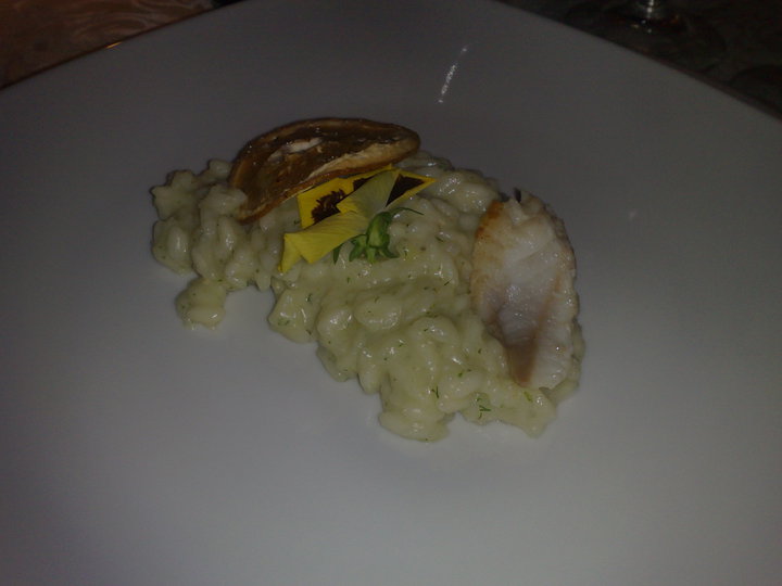 Riso carnaroli con erbette campestri e pescatrice al limone