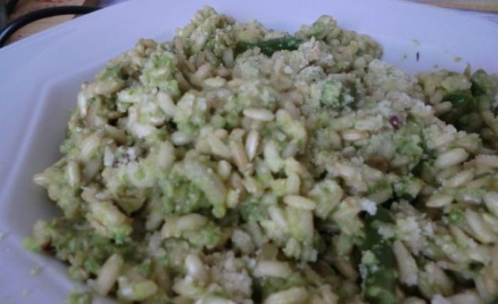 Riso integrale di Sibari con asparagi, favette e colatura di alici di Cetara