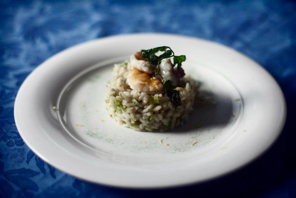 Risotto alla rana pescatrice, alghe di mare, pepe bianco e scorzetta di fresca di limoni