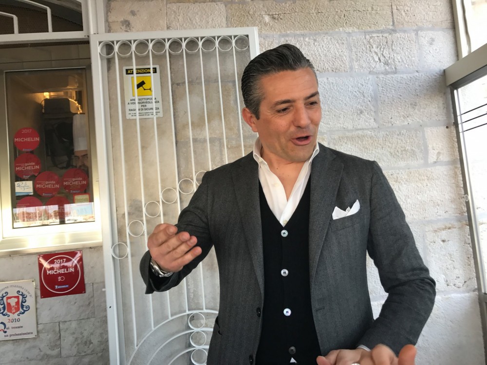 Un patròn di stampo antico, simpatia ed eleganza, capaci di prendersi quella confidenza che alla fine mantiene il giusto rapporto con il cliente. E una cucina semplice, come la si trova nei migliori locali di Trani: grandi crudi che qui, lo ricordiamo, sono una tradizione antica e non una moda, e qualche primo ben eseguito e, volendo un secondo. Chiusura con dolci tradizionali.