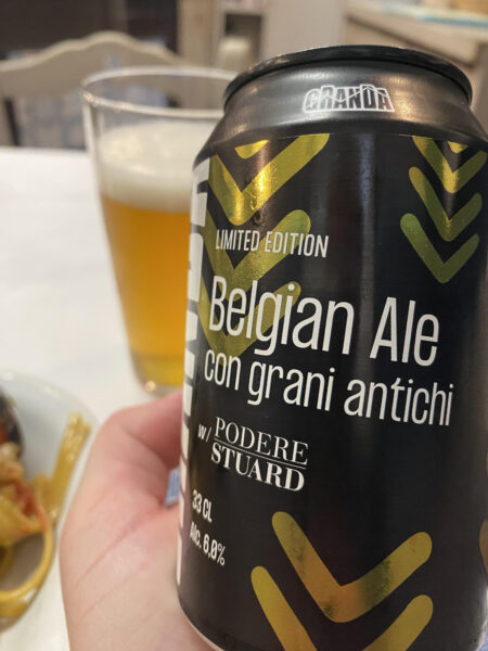 Dato che ero ormai entrato nel mood, sfidando quasi gli abbinamenti, come primo piatto ho scelto le Linguine alla Carbonara con cozze, vongole, calamari, gamberi, uova e pachino. E qui abbiamo alzato l’asticella con una Belgian Ale dai grani antichi del Birrificio della Granda, che andava ad attenuare il gusto deciso delle linguine in maniera delicata, senza annientarlo completamente.