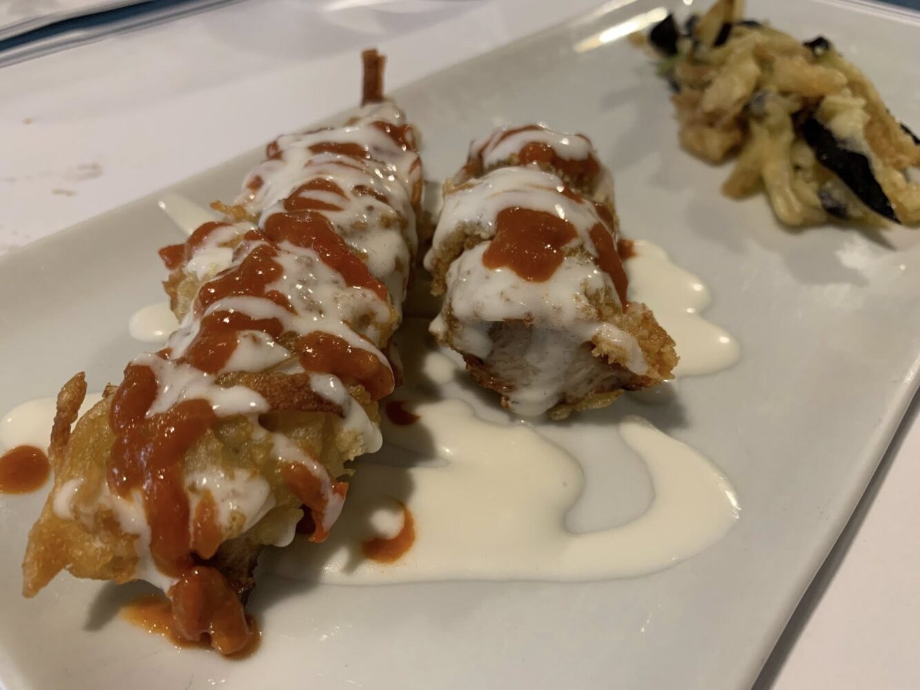 In successione ecco qui un’abbondante carrellata di antipasti e di secondi che ho avuto la fortuna di assaggiare: frittura di pesce, alici con ricotta ed alla cilentana (ripiene con uova e formaggio, fritte e servite con sugo di pomodoro), melanzane alla cilentana (uguali alle alici alla cilentana), carpaccio di baccalà e limone, tonno affumicato, bresaola di tonno, polpettine con baccalà zucchine e ricotta, insalata di polpo e finocchi, insalata di totani alla catalana e pesce spada con verdurine.