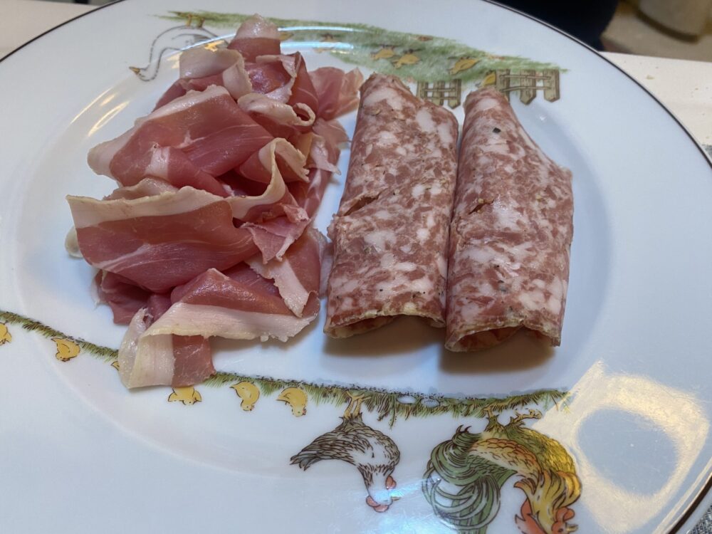 Dopo l’amuse bouche di rito (macaron salato di farina di semi di zucca e ricotta affumicata di malga) e un piatto di soppressa “del contadin” selezionata da Aurelio, inizia l’omaggio a Cosetti, estrapolato qua e là dal menu.