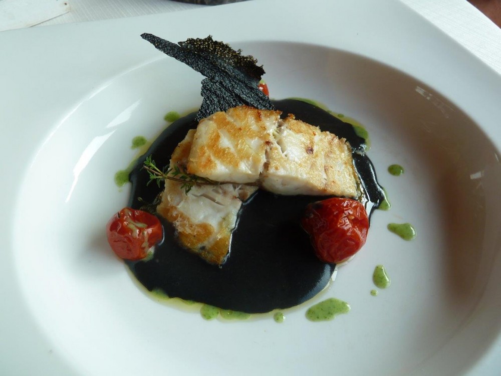 Al Vigneto, trancetti di orata con morbido al nero di seppia