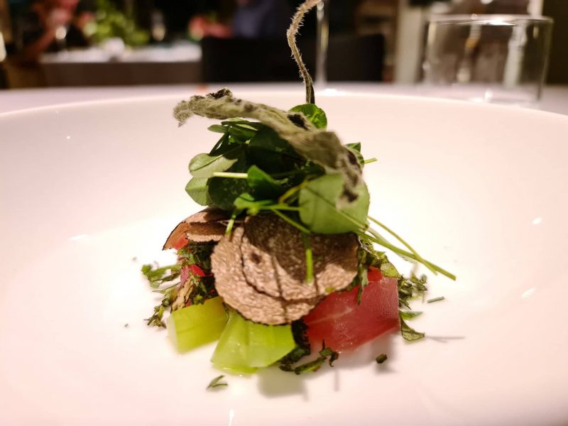 Rigore e tecnica sono un mezzo per portare l’ospite in un viaggio entusiasmante e controllato. I gusti dei piatti trovano profondità nella materia ed il mondo vegetale viene esaltato con pari dignità degli altri ingredienti. In un autunno che regala gli ultimi scampoli di tepore e d’estate, i prodotti si mischiano e si percepisce in pieno che la cucina è movimento, che la natura è in movimento, che Antonia è in movimento.